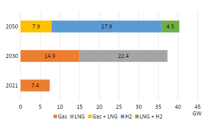 Theo quy hoạch điện 8 (PDP8, 2023), Cơ cấu nguồn điện khí đến năm 2030: nhiệt điện khí trong nước đạt 14,9 GW, nhiệt điện LNG đạt 22,4 GW; đến năm 2050: nhiệt điện khí trong nước và chuyển sử dụng LNG đạt 7,9 GW, nhiệt điện khí trong nước chuyển chạy hoàn toàn bằng hydro đạt 7 GW, nhiệt điện LNG đốt kèm hydro đạt 4,5 – 9 GW (xem hình 1).